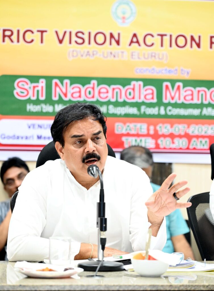 విజన్ యాక్షన్ ప్లాన్ సమీక్షా సమావేశంలో రాష్ట్ర పౌర సరఫరాల శాఖ మరియు జిల్లా ఇంచార్జ్ మంత్రి నాదెండ్ల మనోహర్