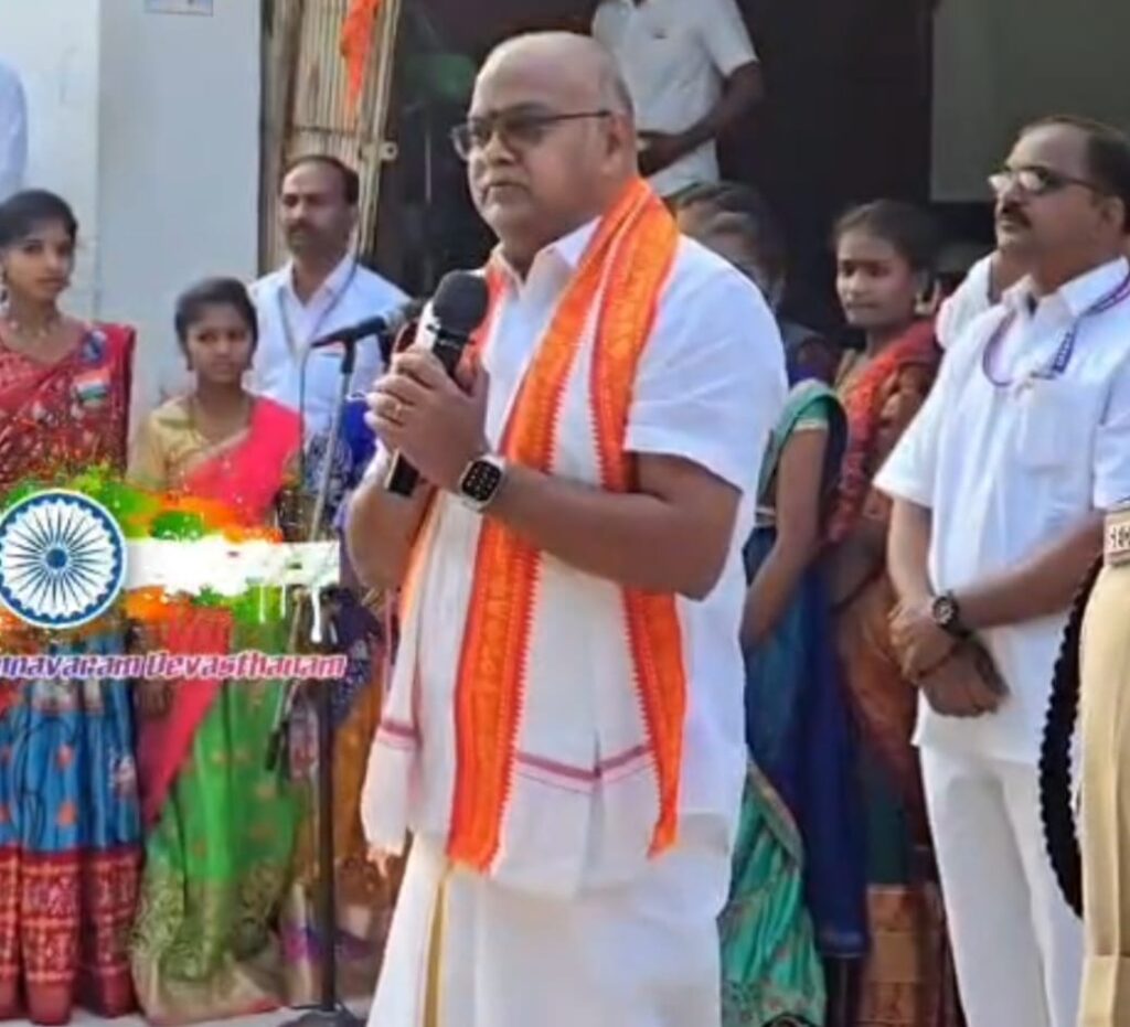 Veer Venkata Satyanarayana Swamy Devasthanam celebrated Republic Day with grandeur. Temple EO Vendra TrinadhaRao unfurled the national flag, urging patriotism and unity. Officials, priests, security staff, and devotees paid homage, praying for India’s prosperity and peace under divine blessings.
