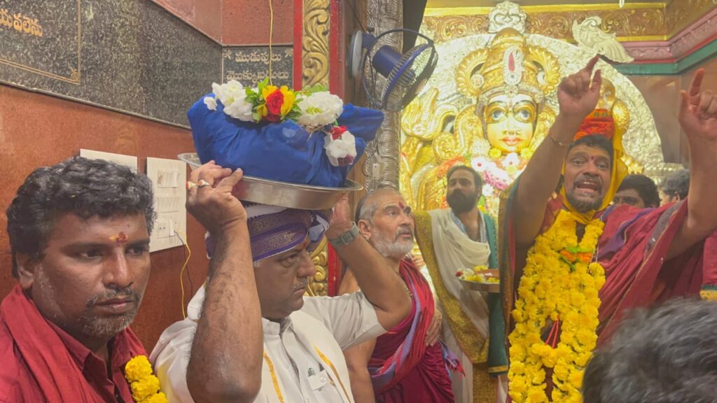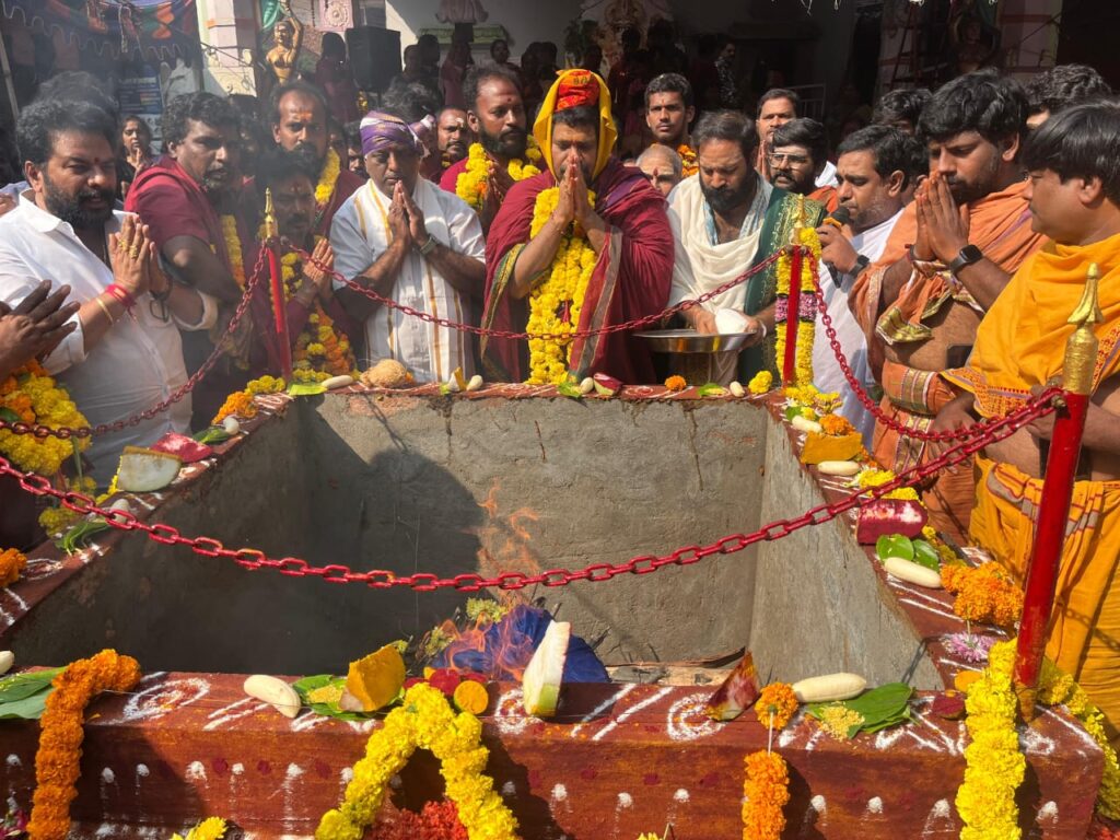 The event began with the Kalasha Sthapana Puja led by the temple’s chief priest. Following the rituals, sacred offerings for Poornahuti were placed on the head of Temple Assistant Commissioner Buddha lakshmi Nagesh amid traditional instrumental music. The atmosphere reverberated with chants of “Jai Sri Mavullamma,” as thousands of devotees took part in the sacred proceedings.
