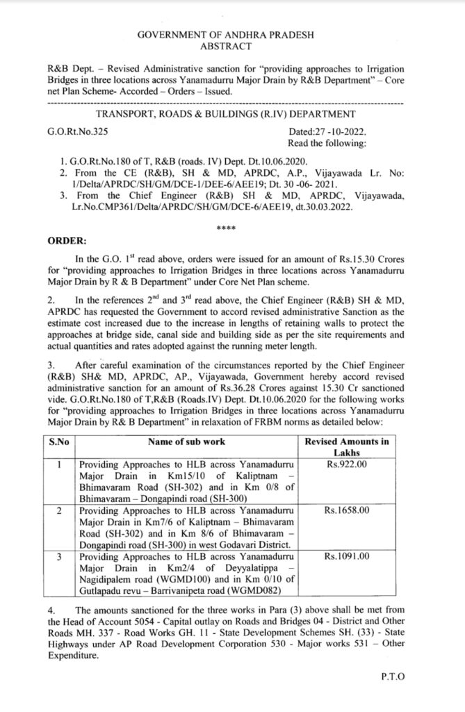 ఈ సమస్యను అప్పటి ఎమ్మెల్యే గ్రంధి శ్రీనివాస్ రాష్ట్ర ప్రభుత్వ దృష్టికి తీసుకెళ్లడంతో, వైఎస్ జగన్మోహన్ రెడ్డి నాయకత్వంలోని ప్రభుత్వం సుమారు రూ.38.50 కోట్ల నిధులు మంజూరు చేసింది. ఆధునిక డిజైన్లతో అప్రోచ్ రోడ్ల నిర్మాణానికి ప్రణాళికలు సిద్ధం చేసి, టెండర్ ప్రక్రియను కూడా ప్రారంభించారు. అయితే మొదటి టెండర్‌కు ఒకే దరఖాస్తు రావడంతో మళ్లీ టెండర్ పిలిచారు. ఇదే సమయంలో ఎన్నికల కోడ్ అమల్లోకి రావడంతో ప్రక్రియ ఆగిపోయింది.