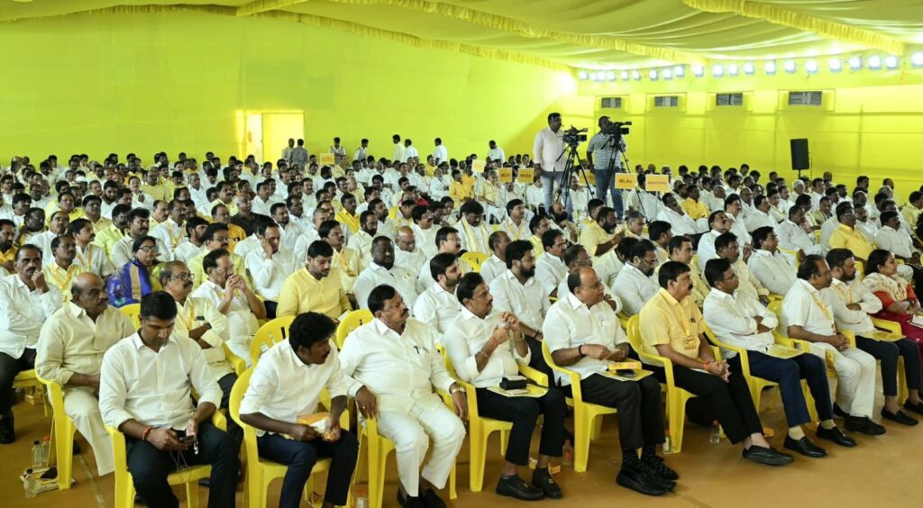 కూటమి ప్రభుత్వం ఏడాది పాలన పూర్తి చేసుకున్న సందర్భంగా “సుపరిపాలనలో తొలి అడుగు” కార్యక్రమం, పార్టీ సంస్థాగత నిర్మాణంపై చర్చించేందుకు మంగళగిరిలోని జాతీయ పార్టీ కార్యాలయంలో ఆదివారం నిర్వహించిన టీడీపీ విస్తృత స్థాయి సమావేశంలో ఎమ్మెల్యేలు, మంత్రులు, సహచర ఎంపీలతో కలిసి ఎంపీ పుట్టా మహేష్ కుమార్ పాల్గొన్నారు.
