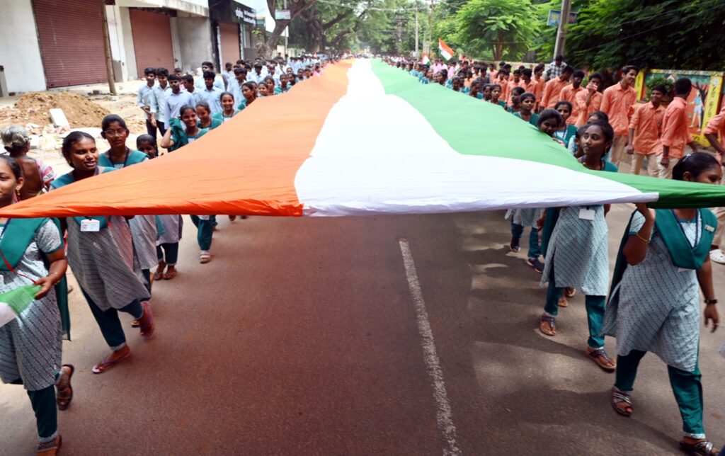 - 100 అడుగుల జాతీయ జెండాతో హర్ ఘర్ తిరంగా ర్యాలీలో పాల్గొన్న జిల్లా కలెక్టర్ కె. వెట్రిసెల్వి..