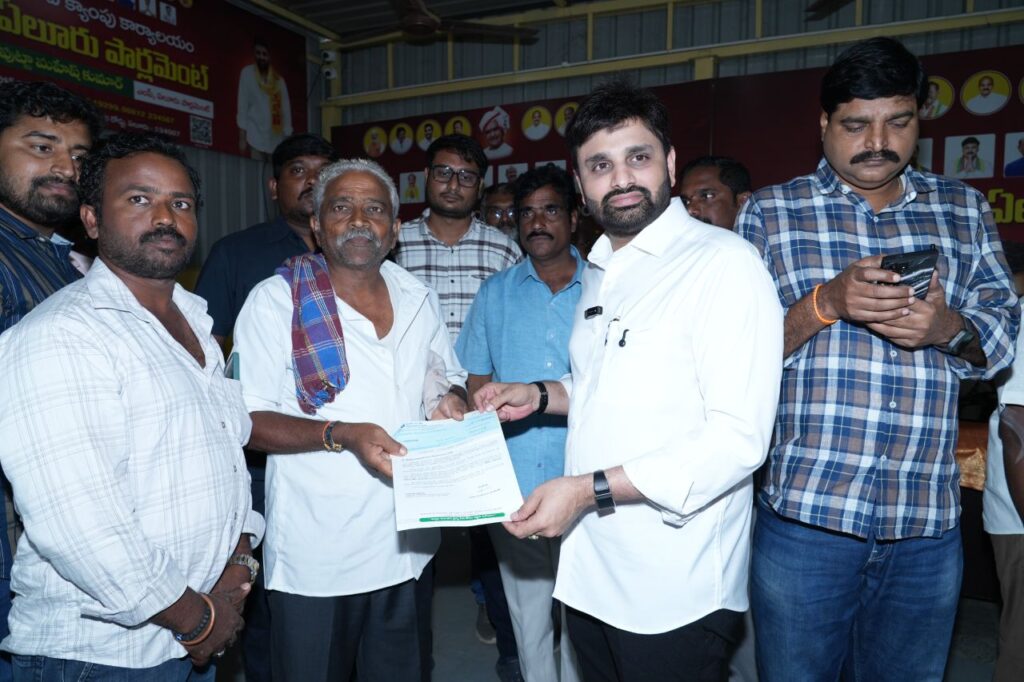CMRF చెక్కుల పంపిణీ: 37 మందికి 17.5 లక్షలు విలువైన CMRF చెక్కులను అందించిన ఎంపీ వారి యోగక్షేమాలను అడిగి తెలుసుకున్నారు. అనంతరం బాదంపూడి ఎస్సీ కాలనీ గ్రామస్థులు ఎంపీను కలిసి ప్రతిపాదిత రైల్వే గేట్ ROB వల్ల పేదల ఇళ్ళు కోల్పోతున్న పరిస్థితిని ఎంపీ కి వివరించారు. దీనిపై స్పందించిన ఎంపీ రైల్వే అధికారులతో చర్చించి న్యాయం చేస్తానని హామీ ఇచ్చారు.