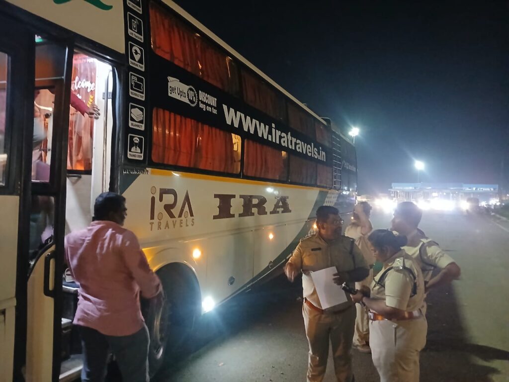 ఇటీవల కర్నూలు వద్ద జరిగిన ట్రావెల్ బస్సు ప్రమాదం నేపథ్యములో రవాణా శాఖ కమిషనర్ ఆదేశాల మేరకు రాష్ట్రవ్యాప్తంగా వాహన తనిఖీ అధికారులు.. ప్రైవేట్ కాంట్రాక్ట్ క్యారేజ్ బస్సులపై విస్తృతం స్థాయిలో తనిఖీలు నిర్వహిస్తున్నారు.