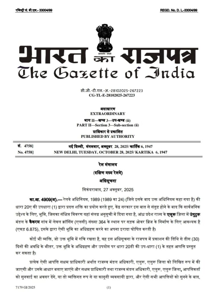 • ‎కైకరం, దెందులూరు ఆర్వోబీలకు భూసేకరణ నోటిఫికేషన్ జారీ.‎