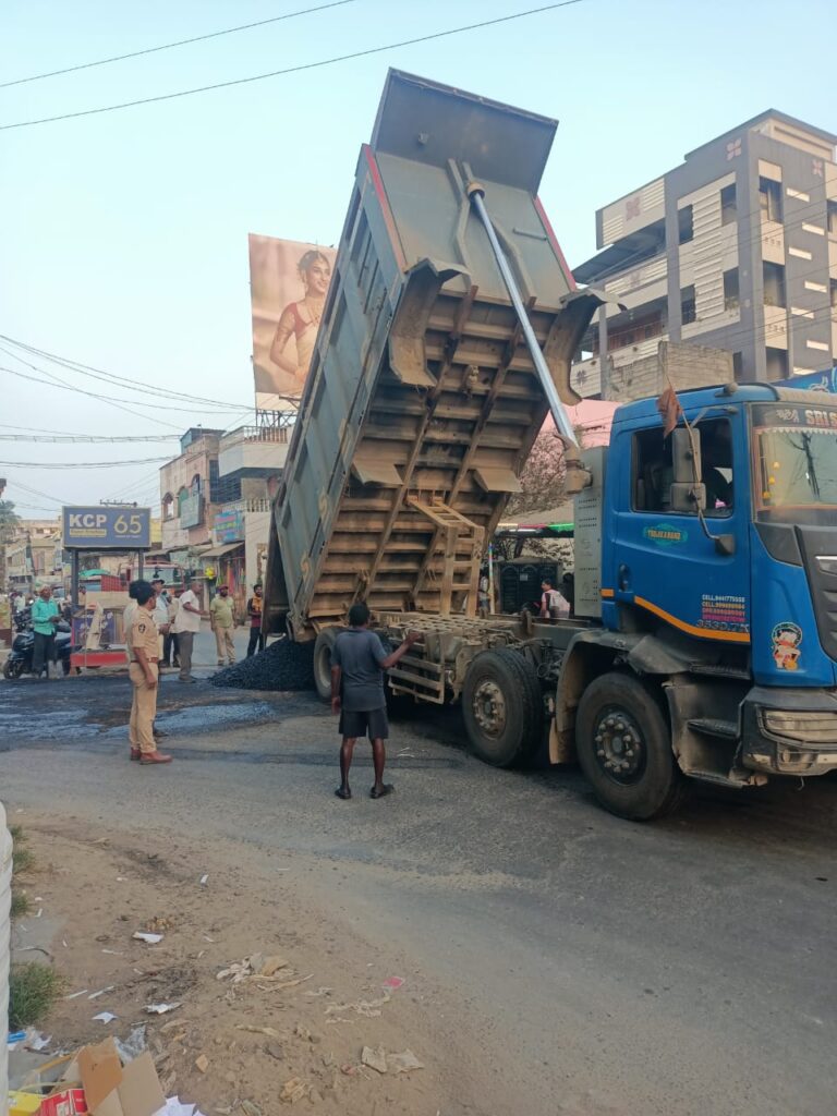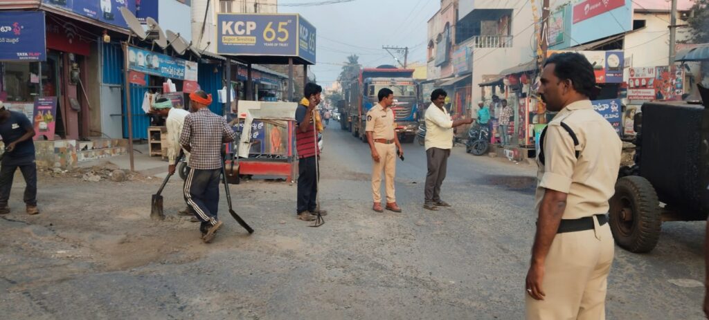 పరిశీలనలో భాగంగా ఆ ప్రాంతంలో రహదారిపై గుంతలు ఏర్పడటంతో తరచుగా ప్రమాదాలు జరుగుతున్నట్లు గుర్తించారు. ఈ విషయాన్ని వెంటనే సంబంధిత నేషనల్ హైవేస్ అథారిటీ ఆఫ్ ఇండియా అధికారుల దృష్టికి తీసుకెళ్లి, తక్షణ చర్యలు చేపట్టేలా సమన్వయం చేశారు. వారి సహకారంతో జేసీబీల సహాయంతో గుంతలను పూడ్చి రహదారిని మరమ్మతు చేశారు.