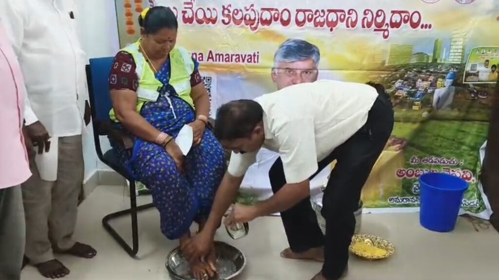 ఈ కార్యక్రమంలో భాగంగా ఈరోజు శ్రీహరిపురం గ్రామంలోని సచివాలయ సిబ్బంది గ్రీన్ అంబాసిడర్స్ (పారిశుధ్య కార్మికులు) ఒక్కొక్కరు 116 రూపాయలు చొప్పున CRDA ఎకౌంటుకు విరాళం అందించినందుకు గాను.. కృతజ్ఞుడనై వారి పాదములను కడిగి వారిని సన్మానించడం జరిగింది.