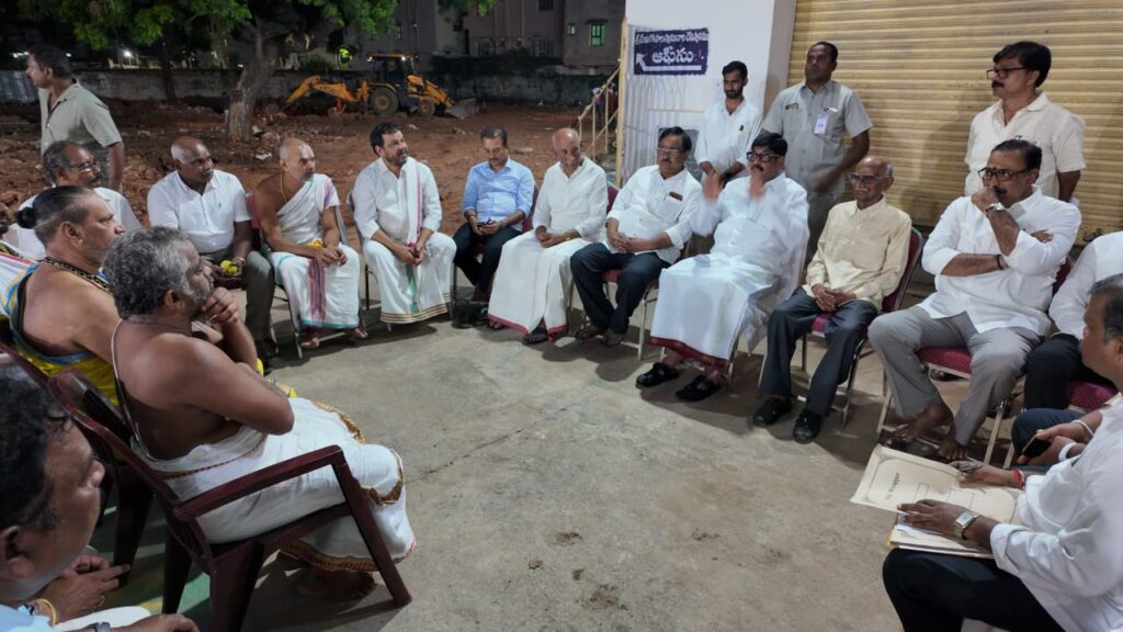 త్రిదండి చిన్న జీయర్ స్వామి వారి శిష్య బృందంతో కలిసి రుక్మిణి సత్యభామ సమేత వేణుగోపాలస్వామి ఆలయ పునర్నిర్మాణానికి భూమి పూజ ఏర్పాట్లను పరిశీలించిన రాష్ట్ర దేవాదాయ శాఖ మంత్రి ఆనం రామనారాయణ రెడ్డి