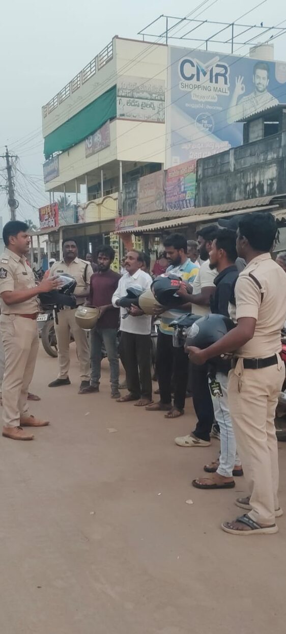 సాధారణంగా వాహన తనిఖీల సమయంలో హెల్మెట్ లేని వారికి పోలీసులు జరిమానా విధించడం పరిపాటి. కానీ ఒక అడుగు ముందుకేసి వినూత్నంగా ఆలోచిం చారు. కేవలం జరిమా నా విధించడం వల్ల వాహనదారుడి కి ఆర్థిక భారం తప్ప రక్షణ లభించదని భావించిన ఆయన, హెల్మెట్ లేకుండా ప్రయాణి స్తున్న 15మంది వాహనదారులకు అవగాహన కల్పించి, వారి క్షేమం కోసం అక్కడికక్కడే హెల్మెట్లు కొనుగోలు చేయించారు.అనంతరం వాహన దారులకు పలు కీలక సూచనలు చేశారు.