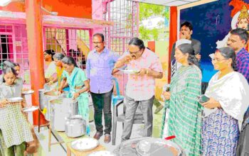 Jana Sena youth leader Bolishetty Rajesh, school principal, students, teachers, and officials attended.