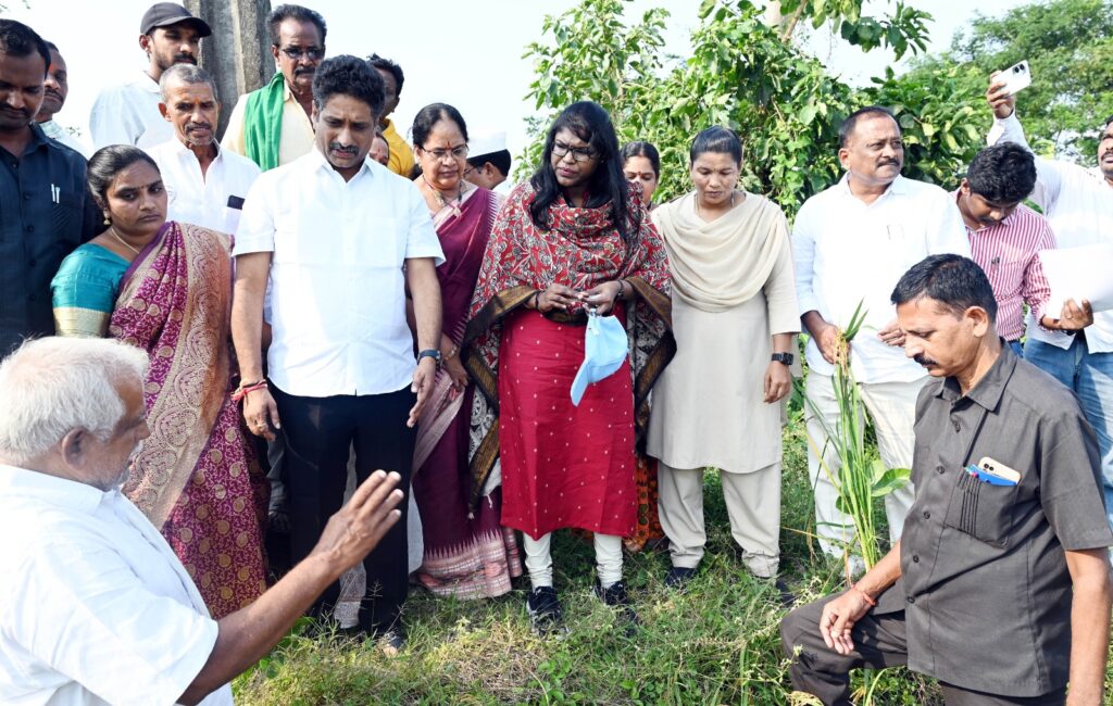 తుఫాన్ కారణంగా ఉంగుటూరు మండలంలో దెబ్బతిన్న పంటలను అధికారులతో కలిసి పరిశీలించిన జిల్లా కలెక్టర్ కె. వెట్రిసెల్వి