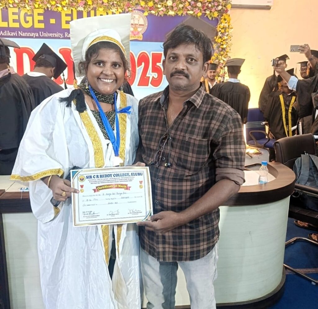 Kaikaram’s K. Naga Sai Suryasri (Regd: 2201325) topped B.Sc (FZC) Fisheries at Eluru CR Reddy College (2020-23), securing the gold medal.